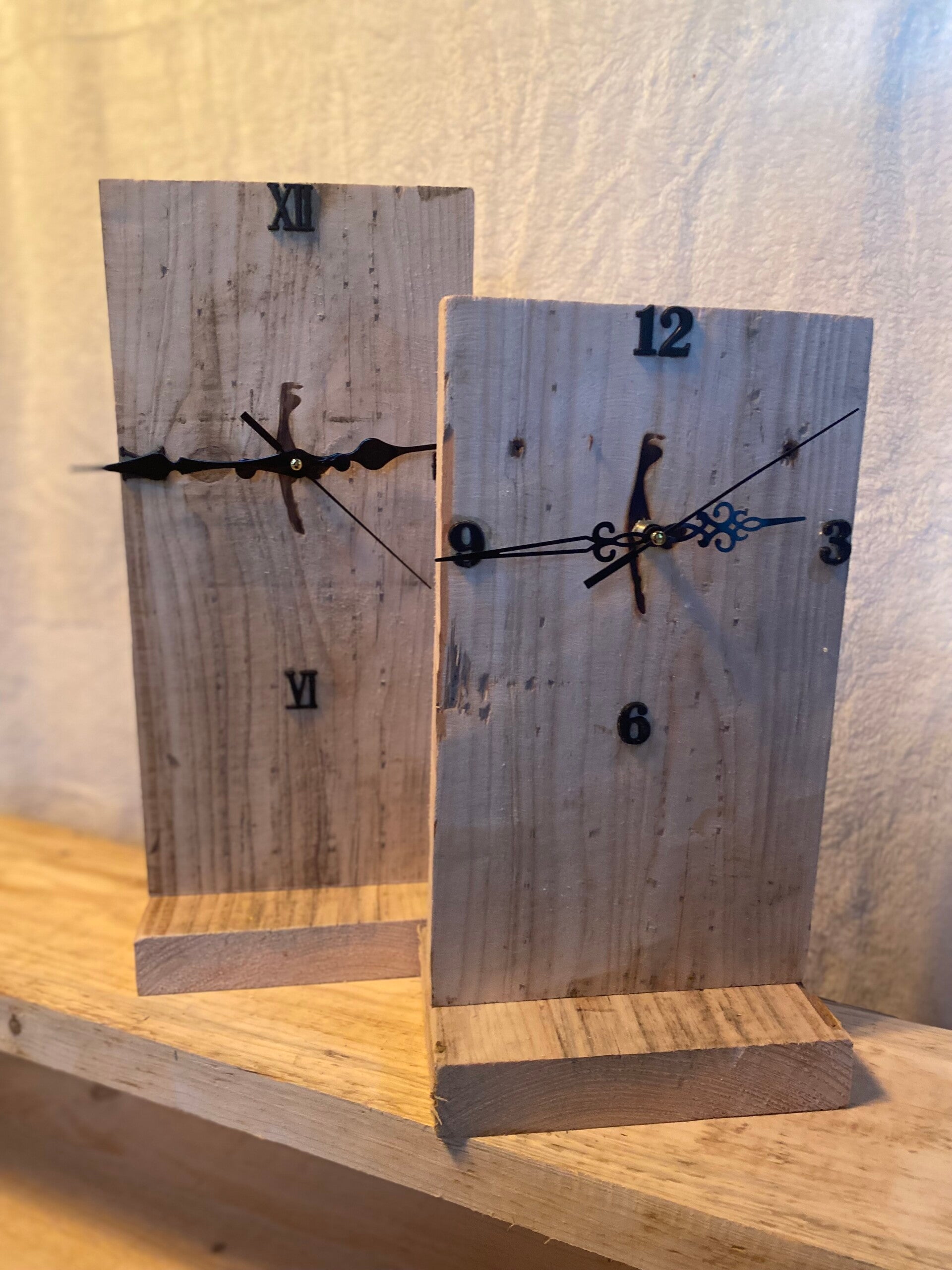 Rustikale und charmante Uhren aus Holz, ideal für eine stimmungsvolle Dekoration in jedem Raum.